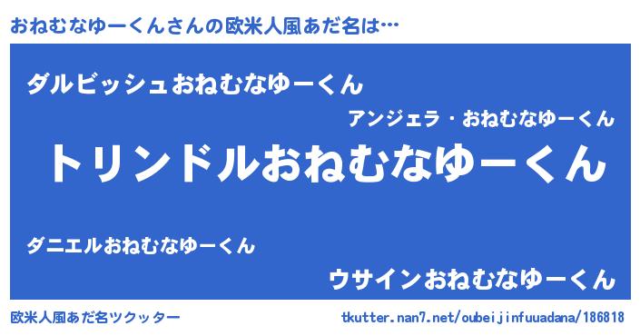 | 男性向けラノベタイトル風あだ名 | 『おねむなゆーくん~年齢イコール彼女いない歴の魔法使い~』 |