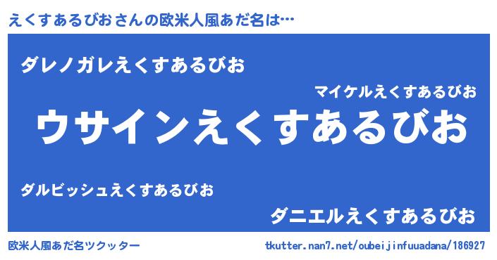 | 男性向けラノベタイトル風あだ名 | 『えくすあるびおの嫁は女の子じゃないと思った?』 |