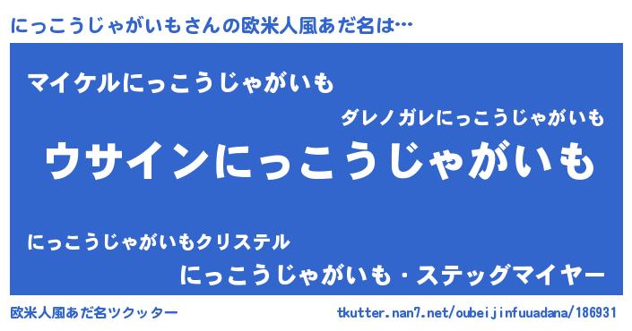 | 男性向けラノベタイトル風あだ名 | 『にっこうじゃがいもの嫁は女の子じゃないと思った?』 |