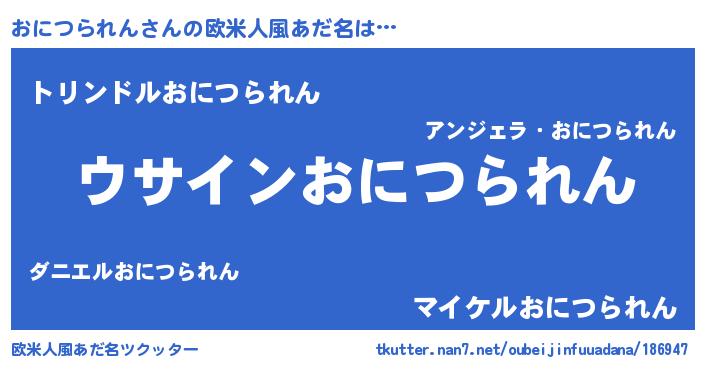 | 男性向けラノベタイトル風あだ名 | 『おにつられんの嫁は女の子じゃないと思った?』 |