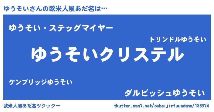 | ファンタジー風あだ名 | 『エターナルユウソイー』『ゼユウトゥ』 |