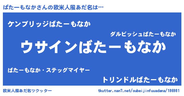 | ヘコむあだ名 | 『ばたっちょ』『ばたーもなか(遠い目)』 |