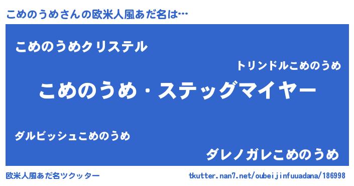 | 意味不明あだ名 | 『こめのうめフォーエバー』 |