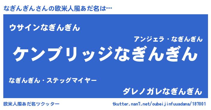 | 男性向けラノベタイトル風あだ名 | 『Re:なぎんぎんから始める異世界生活』 |