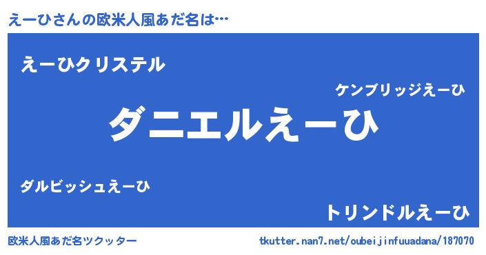 | ヒーロー風カッコイイあだ名 | 『正義の使者えーひ』『最強戦士エーヒ』 |