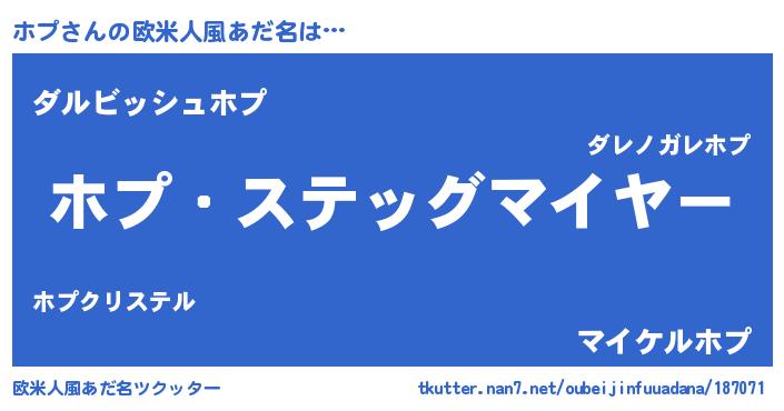| ポケモン風あだ名 | 『メロホップ』『ゼニホプ』 |
