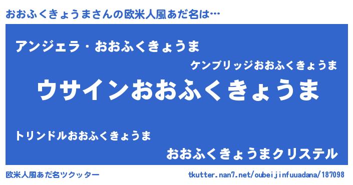 | 女子向けラノベタイトル風あだ名 | 『おおふくきょうまは平凡を望む』 |