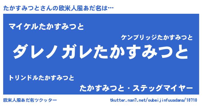 | 男性向けラノベタイトル風あだ名 | 『この素晴らしい世界にたかすみつとを!』 |