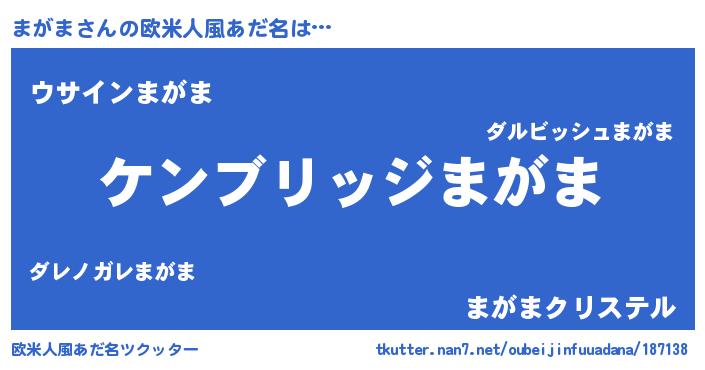 | 意味不明あだ名 | 『自称まがま』『とにかく怪しいまがま』 |