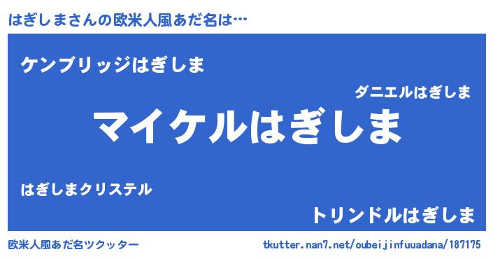 | 男性向けラノベタイトル風あだ名 | 『はぎしまの憂鬱』 |