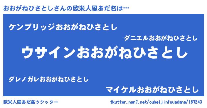| 意味不明あだ名 | 『とにかく怪しいおおがねひさとし』 |