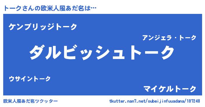 | 女子向けラノベタイトル風あだ名 | 『トークの契約王妃』『闇のトーク』 |