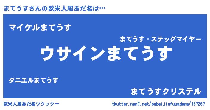 | 男性向けラノベタイトル風あだ名 | 『まてうすの嫁は女の子じゃないと思った?』 |