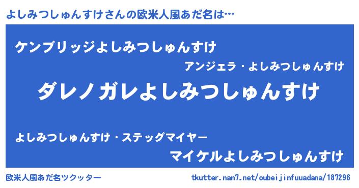 | 意味不明あだ名 | 『住所不定無職よしみつしゅんすけ(41歳)』 |