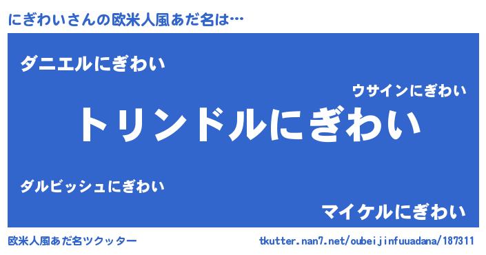 | 男性向けラノベタイトル風あだ名 | 『転生したらにぎわいだった件』 |