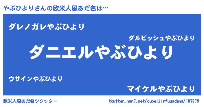 | 男性向けラノベタイトル風あだ名 | 『おまえをオタクにしてやるから、俺をやぶひよりにしてくれ! 』 |