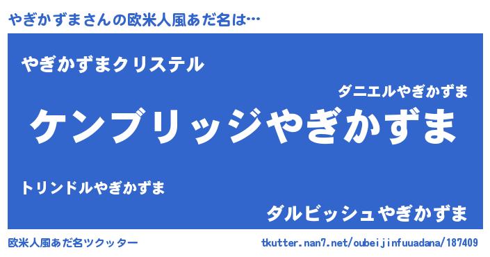 | 意味不明あだ名 | 『自称やぎかずま』『永久保存やぎかずま』 |