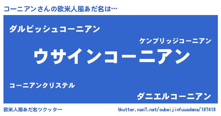 | 女子向けラノベタイトル風あだ名 | 『コーニアンは平凡を望む』 |