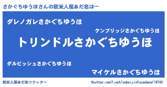 | 女子向けラノベタイトル風あだ名 | 『さかぐちゆうほの玉の輿計画!』 |