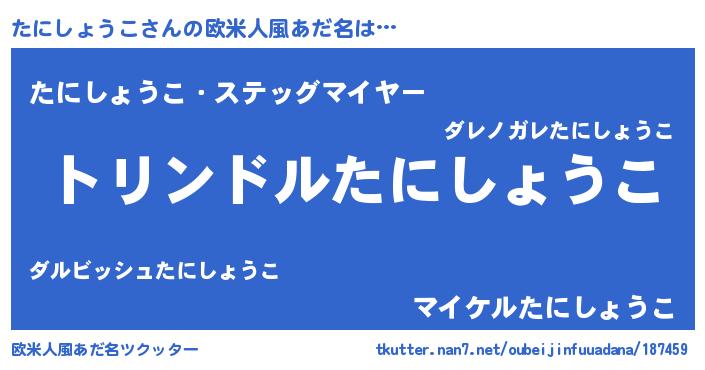| 男性向けラノベタイトル風あだ名 | 『たにしょうこ~年齢イコール彼女いない歴の魔法使い~』 |