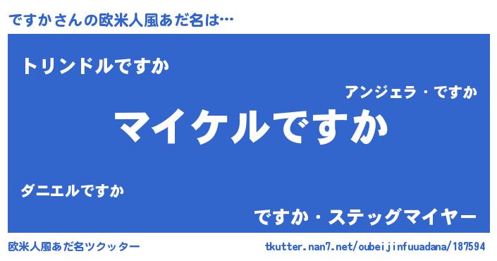 | 男性向けラノベタイトル風あだ名 | 『ですかの憂鬱』『はたらくですかさま!』 |