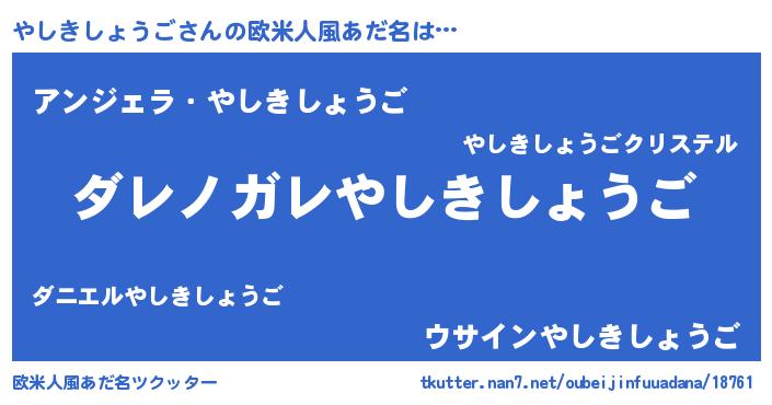 | 男性向けラノベタイトル風あだ名 | 『この素晴らしい世界にやしきしょうごを!』 |