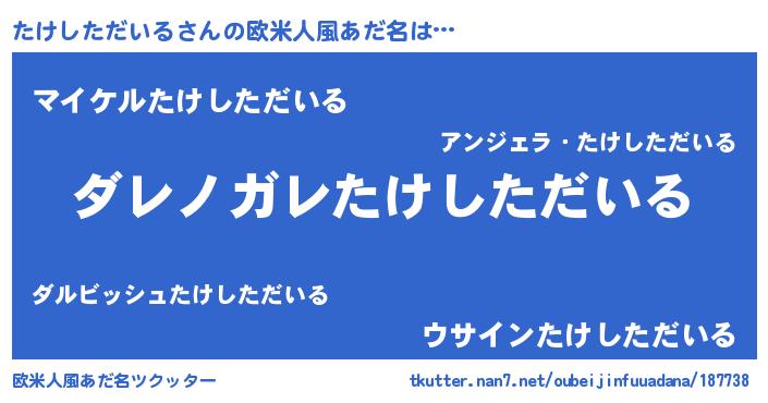 | 男性向けラノベタイトル風あだ名 | 『魔弾の王とたけしただいる』 |