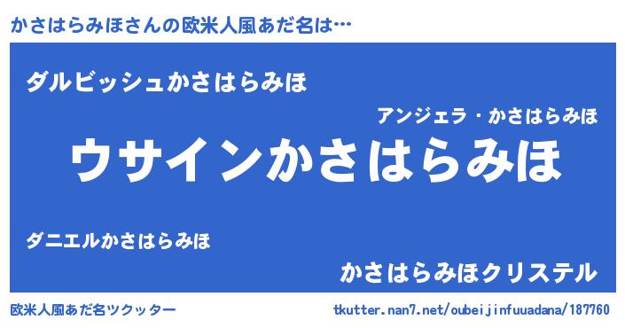| 男性向けラノベタイトル風あだ名 | 『かさはらみほの嫁は女の子じゃないと思った?』 |