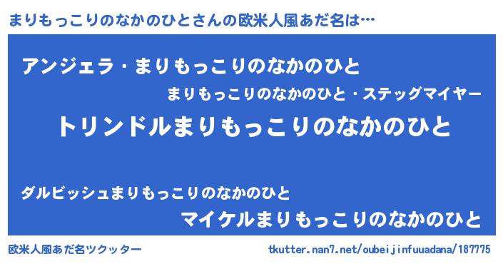 | 男性向けラノベタイトル風あだ名 | 『マリモッコリノナカノヒトスレイヤー』 |