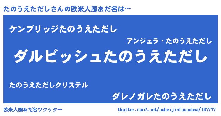 | 男性向けラノベタイトル風あだ名 | 『たのうえただしという概念が存在しない退屈な世界 』 |