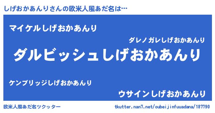 | ヘコむあだ名 | 『しげおかあんり(遠い目)』『しげふぇ~』 |