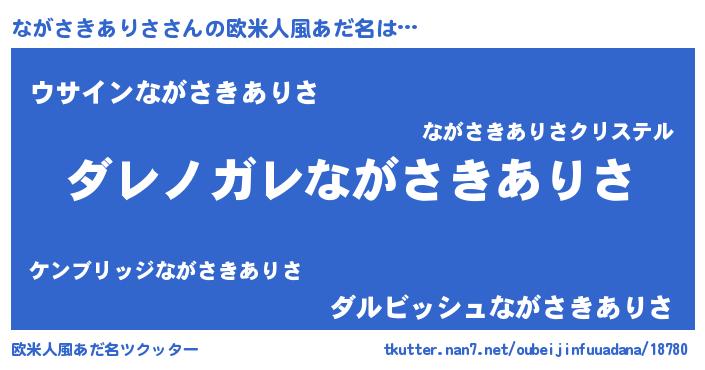 | 女子向けラノベタイトル風あだ名 | 『乙女ゲームの破滅フラグしかない悪役ながさきありさに転生してしまった…』 |
