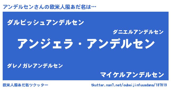 | 恥ずかしいあだ名 | 『アンちん』『プリティーアンデルセン』 |