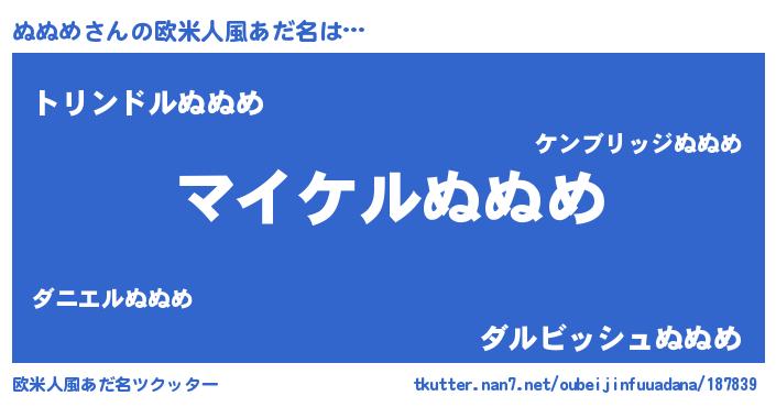 | ポケモン風あだ名 | 『ヌヌチュウ』『ヌヌキング』 |