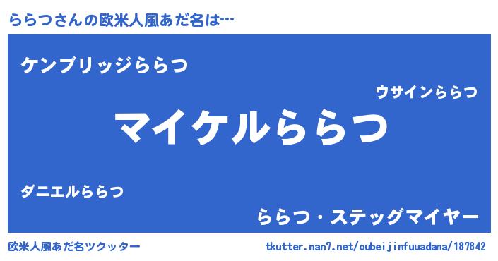 | 意味不明あだ名 | 『ペロリンららつ』『自称ららつ』 |