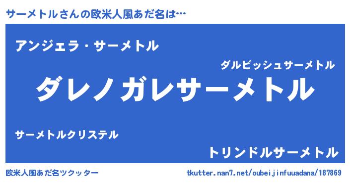 | 男性向けラノベタイトル風あだ名 | 『魔弾の王とサーメトル』 |