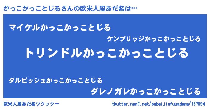 男性向けラノベタイトル風あだ名 | 『転生したらかっこかっことじるだった件』 |