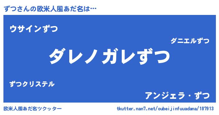 | ポケモン風あだ名 | 『ズーツイ』『ヒズツ』『ズツゴンZ』 |