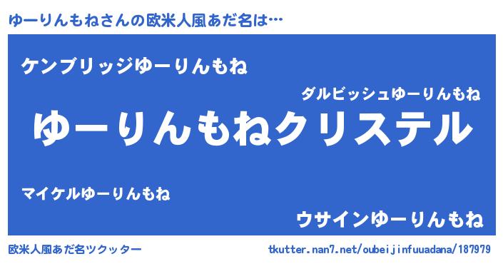 | 女子向けラノベタイトル風あだ名 | 『ゆーりんもねの婚約者』 |