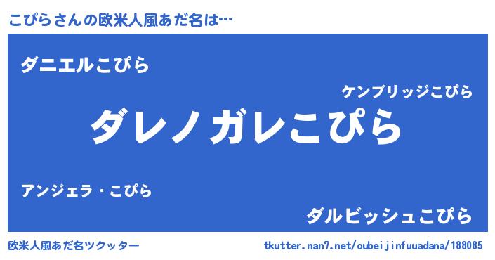 | 意味不明あだ名 | 『住所不定無職こぴら(85歳)』『自称こぴら』 |