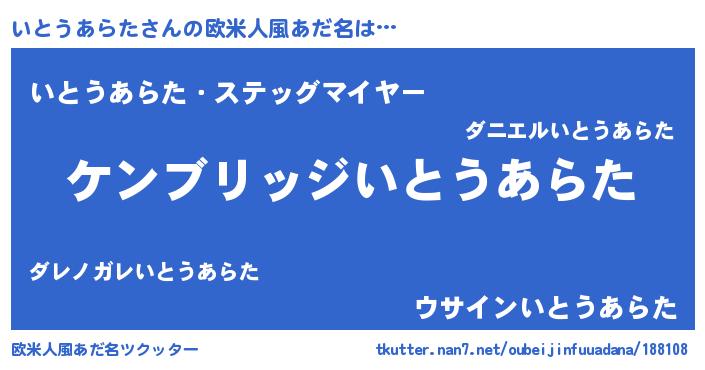 | 女子向けラノベタイトル風あだ名 | 『闇のいとうあらた』 |