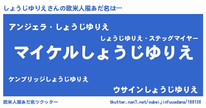 | 男性向けラノベタイトル風あだ名 | 『しょうじゆりえの憂鬱』 |