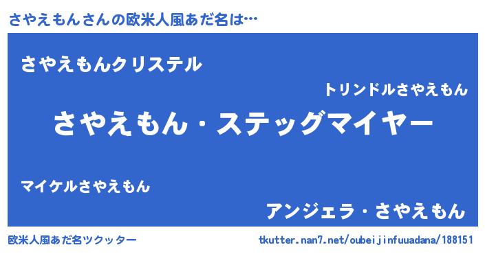 | 男性向けラノベタイトル風あだ名 | 『うちのさやえもんが世界を掌握している!』 |