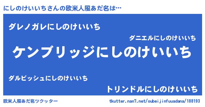 | 意味不明あだ名 | 『自称にしのけいいち』 |