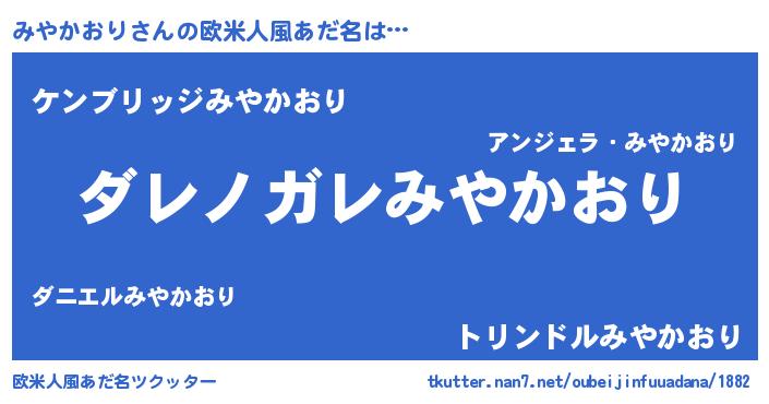 | ヒーロー風カッコイイあだ名 | 『仮面ミヤダー』『天空の使者みやかおり』 |