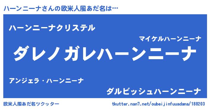 | 男性向けラノベタイトル風あだ名 | 『この素晴らしい世界にハーンニーナを!』 |
