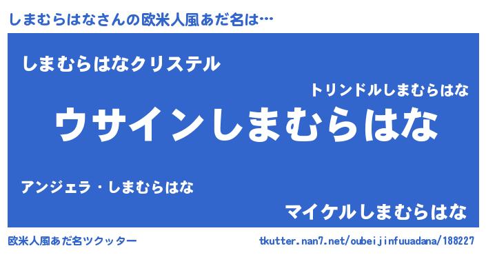 | 男性向けラノベタイトル風あだ名 | 『しまむらはなの嫁は女の子じゃないと思った?』 |