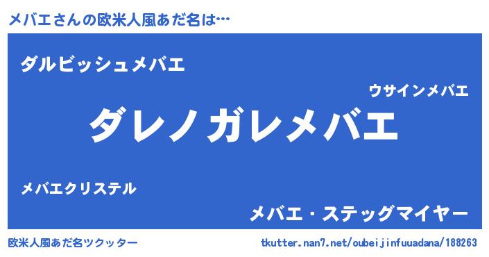 | ポケモン風あだ名 | 『メーバイ』『ゼニメバ』『ヒメバエ』 |