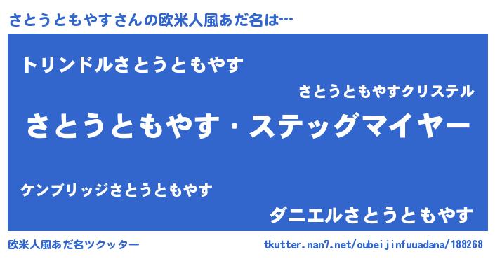 | 男性向けラノベタイトル風あだ名 | 『冴えないさとうともやすの育てかた』 |