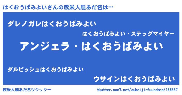 | 意味不明あだ名 | 『住所不定無職はくおうばみよい(91歳)』 |